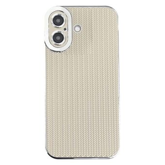 For iPhone 16 Electroplated Silver Edge Grain Texture TPU Phone Case(Beige)