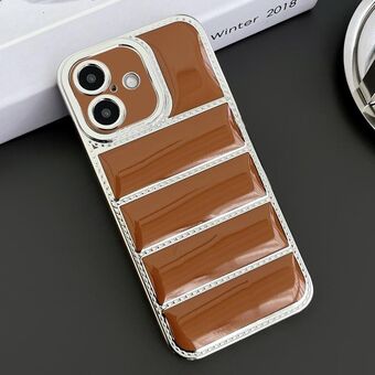 For iPhone 16 Electroplated Silver Edge Eiderdown TPU Phone Case(Brown)