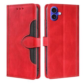 For iPhone 16 Contrast Color Side Buckle Leather Phone Case(Red + Black)