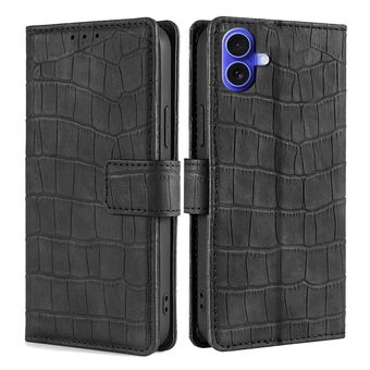 For iPhone 16 Skin Feel Crocodile Magnetic Clasp Leather Phone Case(Black)