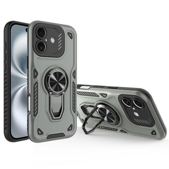 Θήκη τηλεφώνου με μεταλλική περιστρεφόμενη βάση, μαγνητική, από TPU + PC για iPhone 16 (Μαύρο)