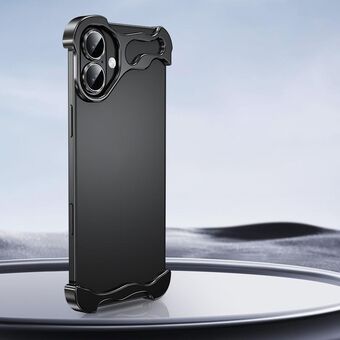 Θήκη τηλεφώνου χωρίς πλαίσιο με μεταλλική γωνία για iPhone 16 με προστατευτική μεμβράνη φακού (Μαύρο)