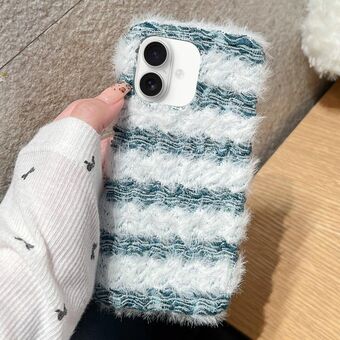 Θήκη τηλεφώνου από βελούδο με υφασμάτινη ρίγα για iPhone 16 (Πράσινο)