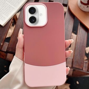 Θήκη κινητού τηλεφώνου 2 σε 1 για iPhone 16, Υβριδική από PC και TPU με αίσθηση δέρματος, Αντίθεση χρωμάτων (Ασημί + Καφέ)
