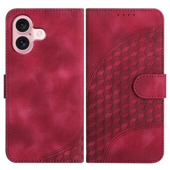 For iPhone 16 YX0060 Elephant Head Embossed Phone Leather Case with Lanyard(Red)
