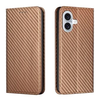 For iPhone 16 Carbon Fiber Texture Magnetic Flip Leather Phone Case(Brown)