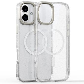For iPhone 16 Glitter Powder Lens Holder MagSafe Magnetic Phone Case(Transparent)