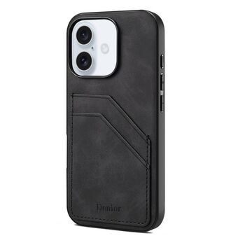 For iPhone 16 Denior D09 PU Dual Card Slot Back Cover Phone Case(Black) (Denior)