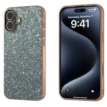 For iPhone 16 Electroplating Frame Colorful Glitter Phone Case(Black Green)