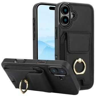 Θήκη τηλεφώνου για iPhone 16 με ελαστική τσέπη για κάρτες και δαχτυλίδι στήριξης (Καφέ)