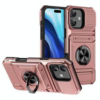 Θήκη τηλεφώνου για iPhone 16 TPU+PC ανθεκτική σε κρούσεις με κάρτες και μεταλλική βάση στήριξης (Μωβ)