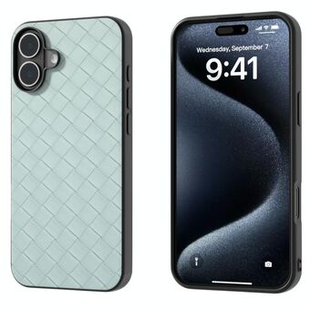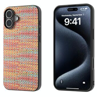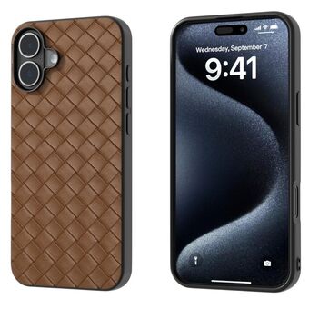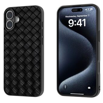 Θήκη τηλεφώνου από PU με υφή πλέγματος για iPhone 16, Μαύρο πλαίσιο (Ροζ)