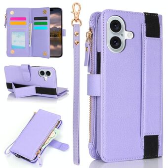 Θήκη τηλεφώνου από δέρμα με υφή δέρματος για iPhone 16, με πολλαπλές θήκες για κάρτες και φερμουάρ (Μαύρο)