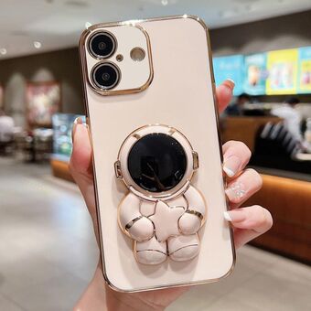 Θήκη τηλεφώνου για iPhone 16 με επιμετάλλωση και στήριγμα αστροναύτη (Ροζ)