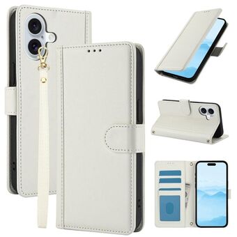 Θήκη τηλεφώνου από δέρμα για iPhone 16 με αίσθηση δέρματος, καθαρά χρώματα, θήκες καρτών και διπλό κορδόνι (Λευκό)