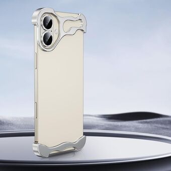Θήκη τηλεφώνου χωρίς πλαίσιο με μεταλλική γωνία για iPhone 16 με προστατευτική μεμβράνη φακού (Ασημί)