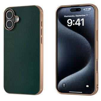 Θήκη τηλεφώνου για iPhone 16, Πρώτης ποιότητας δέρμα αγελάδας με ηλεκτρολυτική επίστρωση πολυανθρακικού (PC) (Πράσινο)