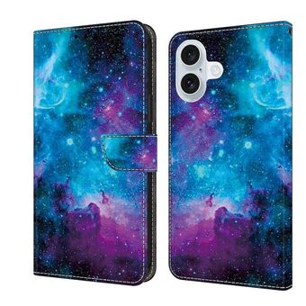 Θήκη τηλεφώνου από δέρμα με κρυστάλλινη βαφή για iPhone 16 (Πολύχρωμος Ουρανός)