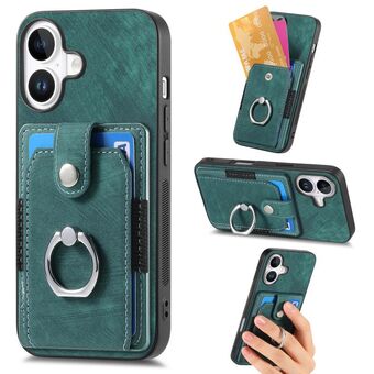 Θήκη τηλεφώνου με δακτύλιο και κάρτες, υφή retro για iPhone 16 (Πράσινο)