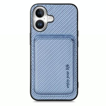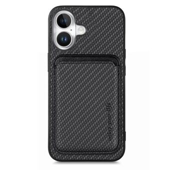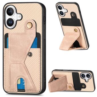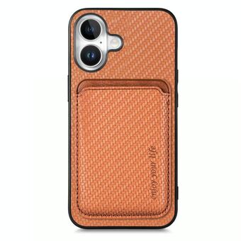 Θήκη κινητού τηλεφώνου για iPhone 16 από ανθρακονήματα, τύπου πορτοφολιού, με κάρτες και σχήμα K (Καφέ)