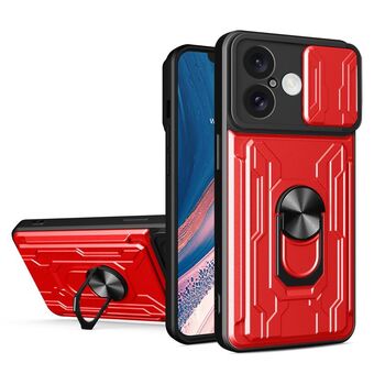 For iPhone 16 Sliding Camshield TPU+PC Phone Case with Card Slot(Red)