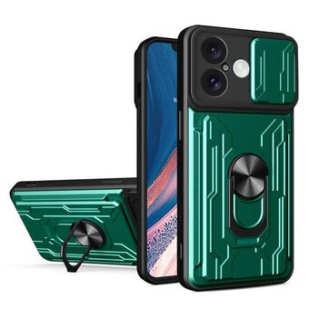 For iPhone 16 Sliding Camshield TPU+PC Phone Case with Card Slot(Dark Green)