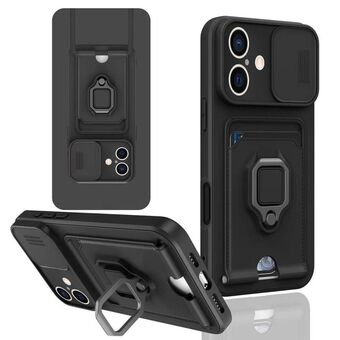For iPhone 16 Sliding Camshield Magnetic Card Holder Silicone Phone Case(Black)