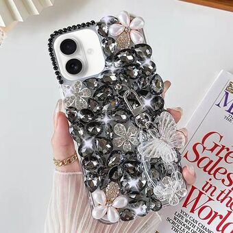 For iPhone 16 Handmade Butterfly Diamond Inlay PC Phone Case(Black)