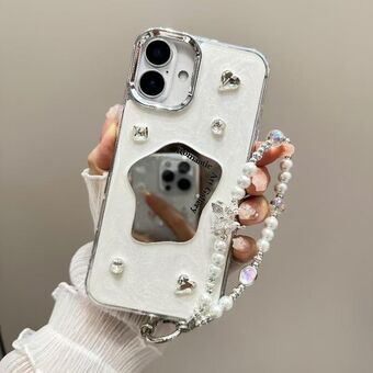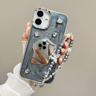 For iPhone 16 Cream Mirror Bracelet Chain TPU Phone Case(Silver Gray)