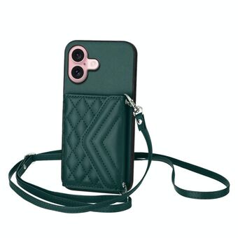 For iPhone 16 Rhombic Texture Card Bag RFID Phone Case with Long Lanyard(Green)