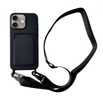 For iPhone 16 Card Slot Liquid Silicone Phone Case with Lanyard(Black)
