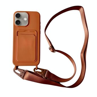 For iPhone 16 Card Slot Liquid Silicone Phone Case with Lanyard(Brown)