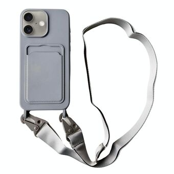 For iPhone 16 Card Slot Liquid Silicone Phone Case with Lanyard(Grey)