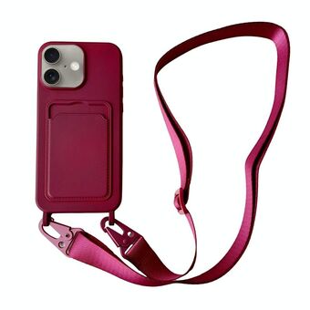 For iPhone 16 Card Slot Liquid Silicone Phone Case with Lanyard(Wine Red)