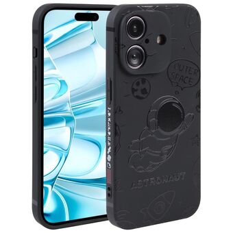 For iPhone 16 Astronaut Pattern Silicone Straight Edge Phone Case(Lovely Astronaut-Black)
