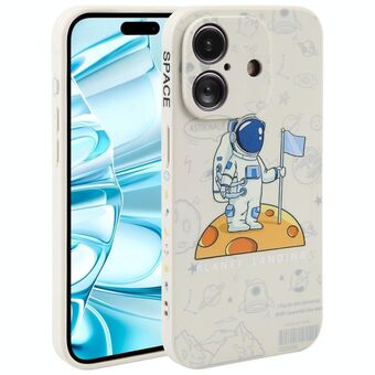 For iPhone 16 Astronaut Pattern Silicone Straight Edge Phone Case(Planet Landing-White)