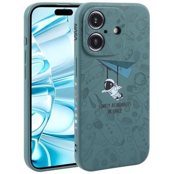 For iPhone 16 Astronaut Pattern Silicone Straight Edge Phone Case(Lovely Astronaut-Green)