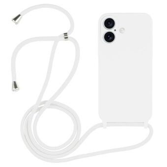 For iPhone 16 Crossbody Lanyard Liquid Silicone Case(White)