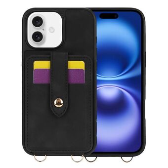 For iPhone 16 Crossbody Skin Card Bag Lanyard Phone Case(Black)