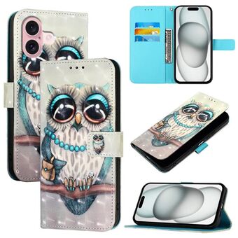 For iPhone 16 3D Painting Horizontal Flip Leather Phone Case(Grey Owl)