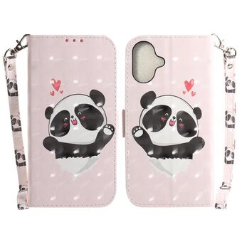 For iPhone 16 3D Colored Horizontal Flip Leather Phone Case(Heart Panda)