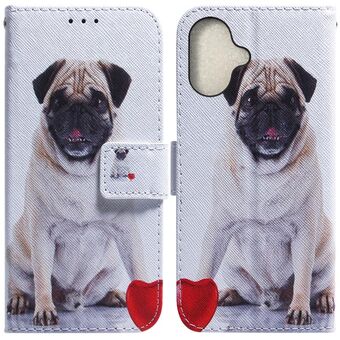For iPhone 16 Coloured Drawing Flip Leather Phone Case(Pug)