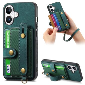 For iPhone 16 Retro Cross Wristband Wallet Leather Back Phone Case(Green)