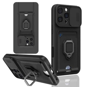 For iPhone 16 Pro Card Bag Holder Acrylic Hybrid TPU Phone Case(Black)