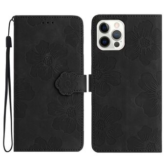 For iPhone 16 Pro Flower Embossing Pattern Leather Phone Case(Black)