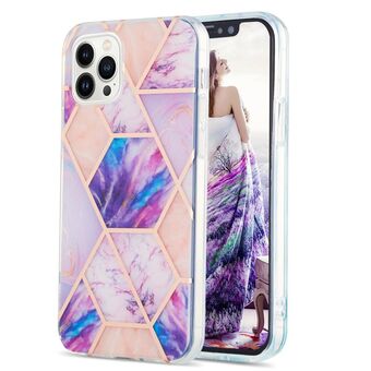 For iPhone 16 Pro Electroplating Splicing Marble Flower Pattern Dual-side IMD TPU Shockproof Phone Case(Light Purple)