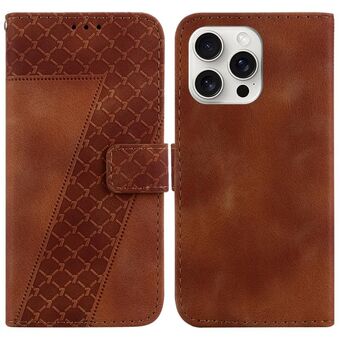 For iPhone 16 Pro Seven-shaped Embossed Leather Phone Case(Brown)