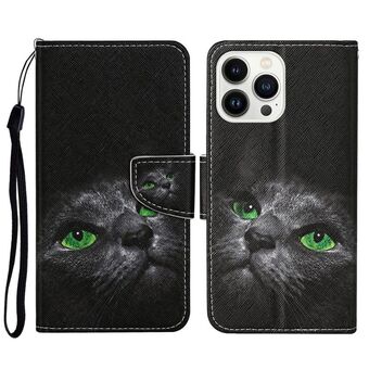 For iPhone 16 Pro 3D Colored Drawing Flip Leather Phone Case(Black Cat)