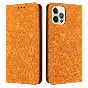 For iPhone 16 Pro Ethnic Embossed Adsorption Leather Phone Case(Yellow)