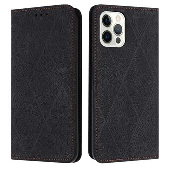For iPhone 16 Pro Ethnic Embossed Adsorption Leather Phone Case(Black)